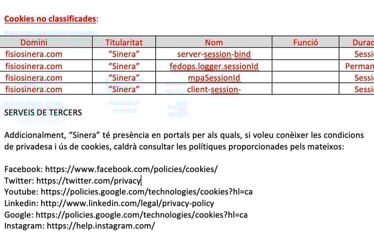 • De seguiment: Emmagatzemen informació sobre els usuaris per mostrar publicitat personalitzada.